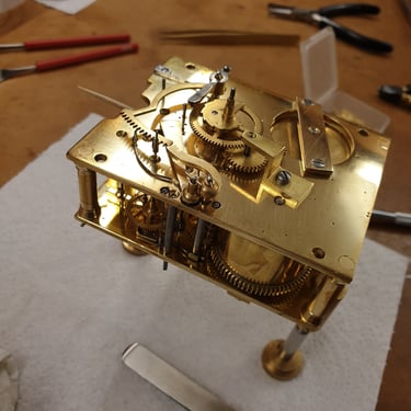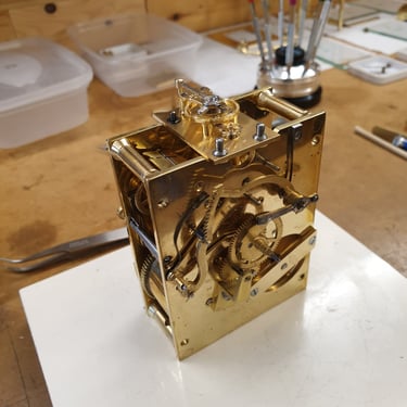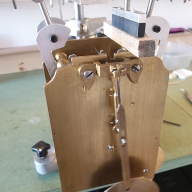 Trained and certified by the British Horological Institute, I have a small but well equipped workshop in Burley in Wharfedale, West Yorkshire. I can undertake servicing and repair to most common kinds of mechanical clocks.
